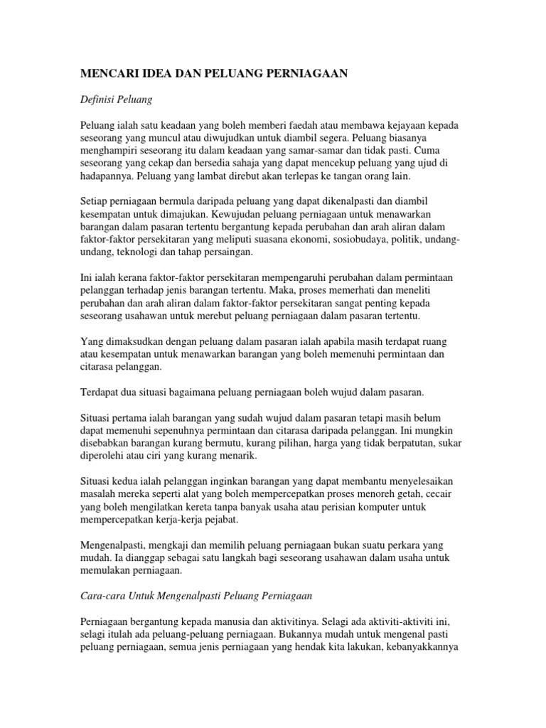 Mencari Idea Dan Peluang Perniagaan Pdf